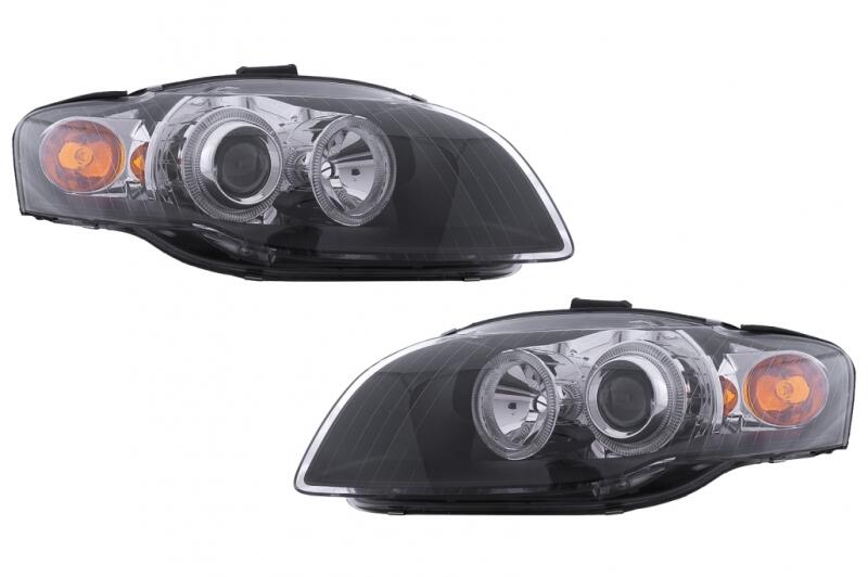 Faruri compatibile cu Audi A4 B7 (11.2004-03.2008) Angel Eyes Negru